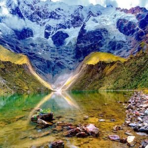 The hike to the Humantay Lagoon is a day trip to visit the beautiful turquoise lake at the base of the glacial mountain of Humantay; located in the Vilcabamba mountain range. You will enjoy nature at its most spectacular. The special algae in the lake, the color of the rocks combined with the reflection of the surrounding vegetation, the blue sky and the splendor of the Andean sun, blend to create a deep shade of turquoise blue that is very rare and beautiful.
